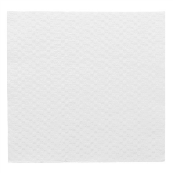 Servilletas blancas de papel gofrado, tamaño 30×30 cm, plegado 1/6. Confeccionadas en material de alta absorción y resistencia, son prácticas y versátiles para bares, restaurantes, caterings y uso doméstico.